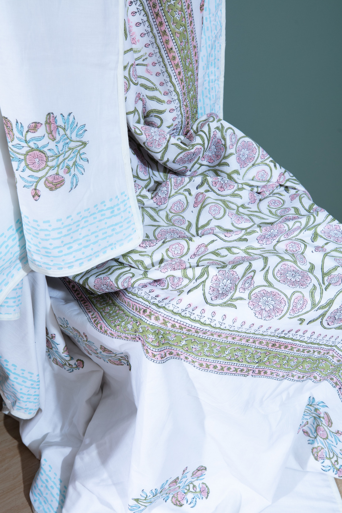 Crafted in the softest Mulmul/Muslin fabrics, our lightweight reversible Dohars are hand block printed to add charm, character and comfort to your bedding set. A flannel lining sandwiched between two layers of breathable mul, these are perfect for summers and light winters.